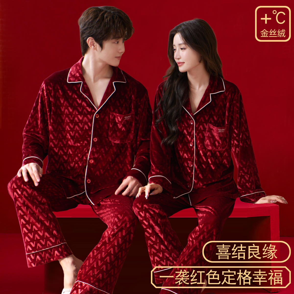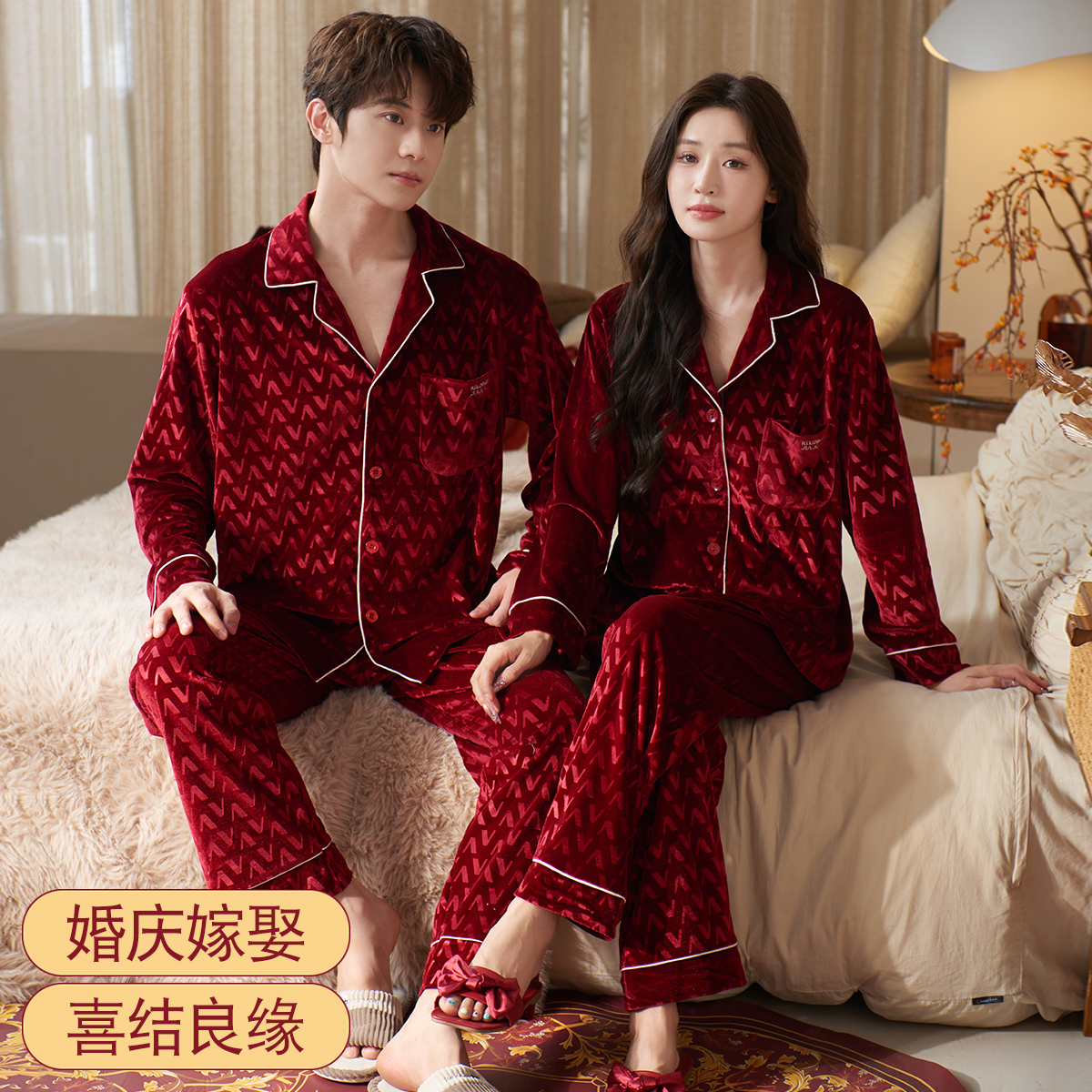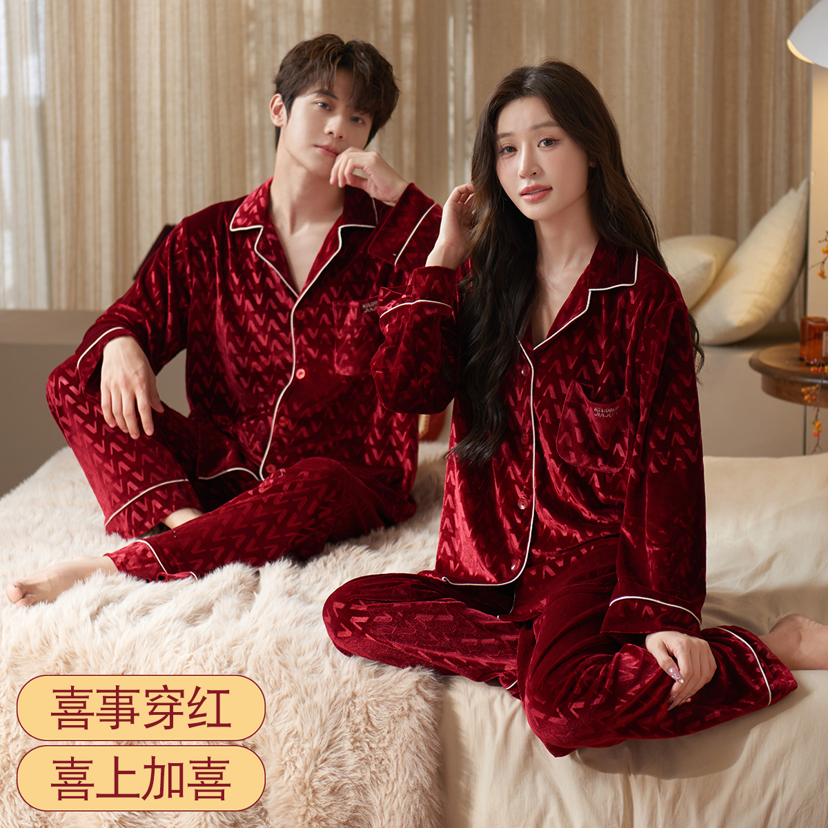 男士 家居服套装 中厚抗静电薄绒开衫 红豆暖暖绒海岛绒睡衣女秋冬款