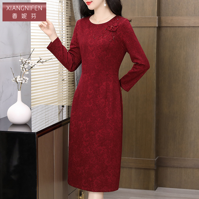 香妮芬阔太太洋气高贵连衣裙女2025新款 气质中年妈妈收腰裙子 秋季