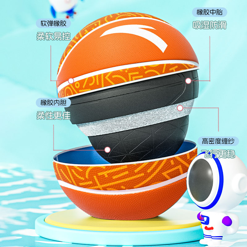安踏静音篮球儿童学生青少年室内耐磨高弹软弹5号布胆蓝球不掉渣