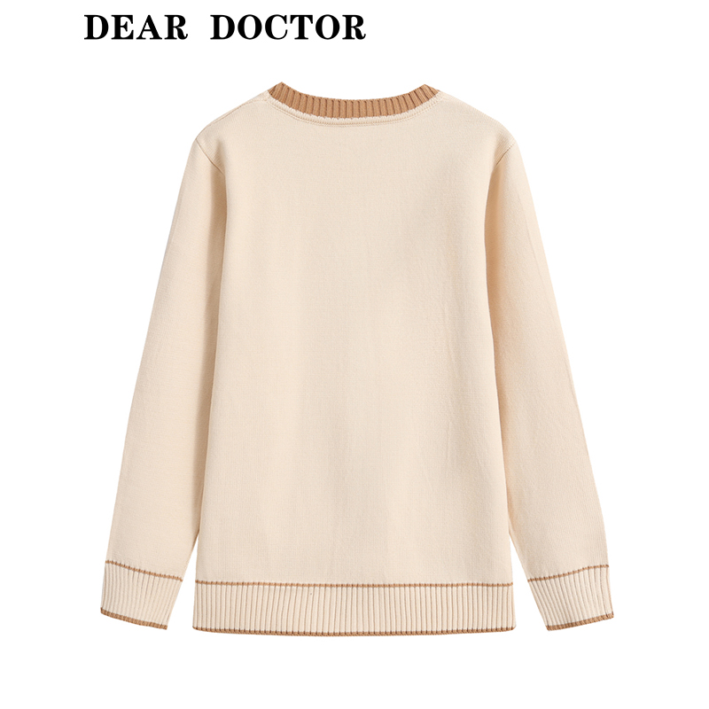 学院风撞色V领麻花毛衣女秋冬宽松慵懒软糯针织衫 上衣 高级感短款