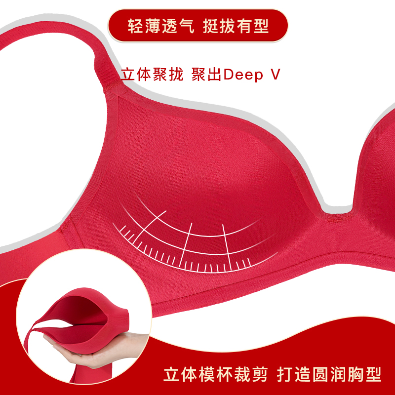 OEING红色内衣女士小胸聚拢显大上托新款 本命年结婚新娘文胸秋冬