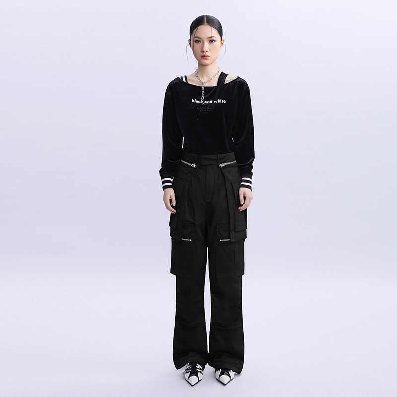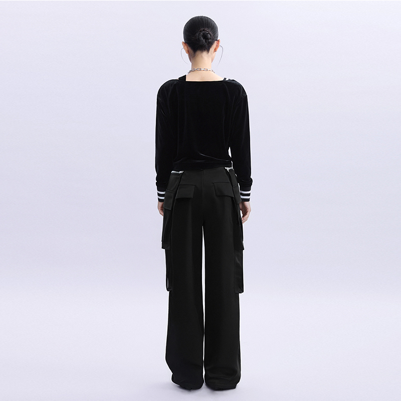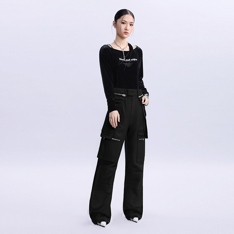 2024年冬新款 裤 女式 黑色个性 子 纳帕佳宽松长款 休闲百搭裤 立体工装
