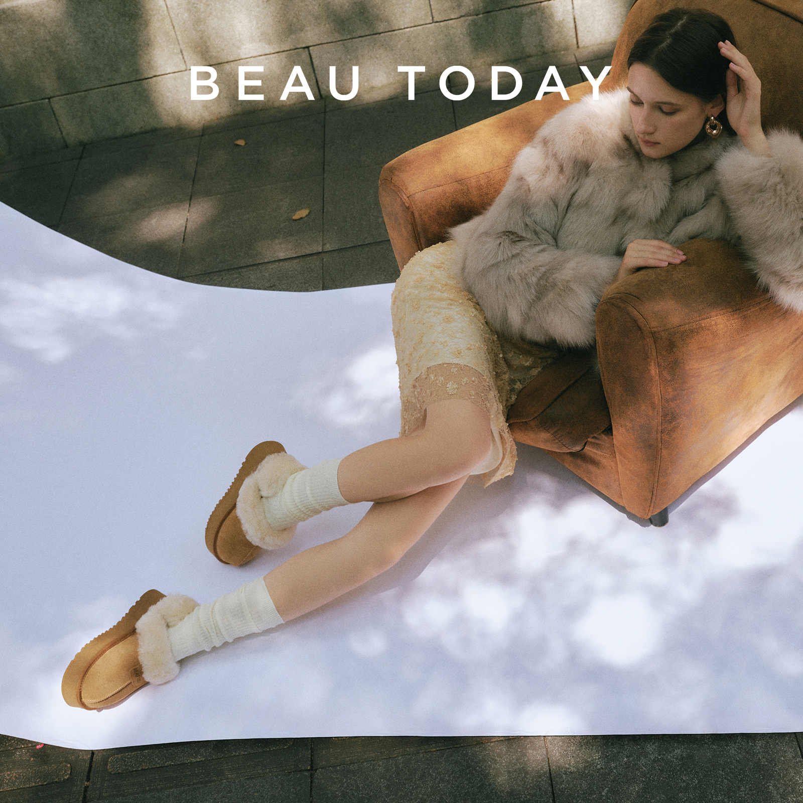 子 泰迪系列外穿毛毛拖鞋 BeauToday厚底雪地靴女秋冬加绒棉鞋 女鞋