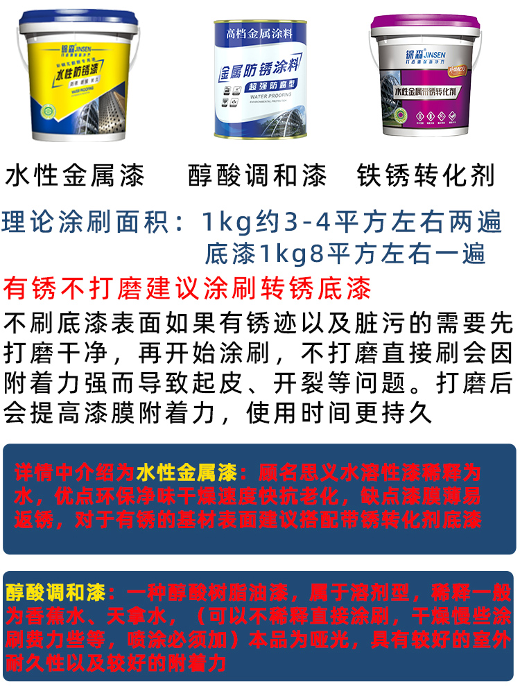 防锈漆水性金属漆油漆自刷涂料打磨防腐翻新漆防水颜色施工彩钢