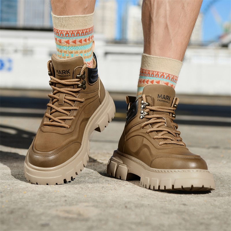 美式 马克华菲男鞋 靴马丁靴男款 潮流增高工装 牛皮机车靴男 2025新款