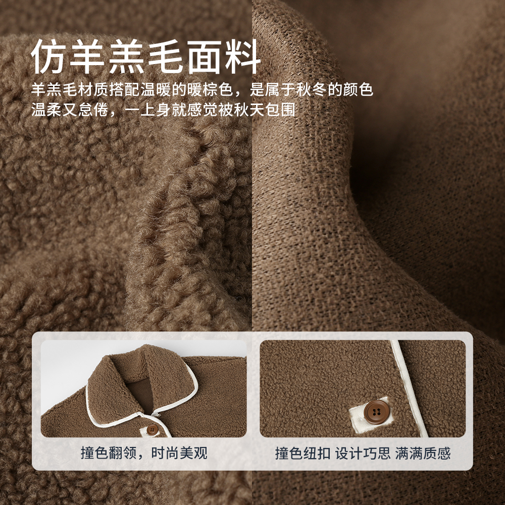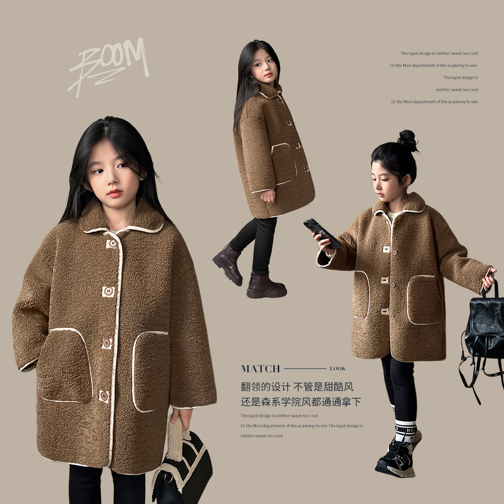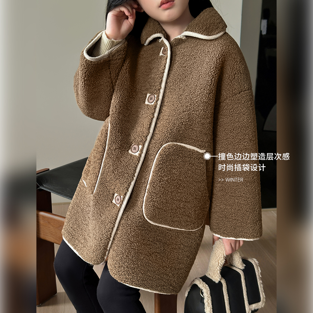 NORNOR女童羊羔绒外套女童2025年秋冬新款 儿童加绒上衣 洋气中长款