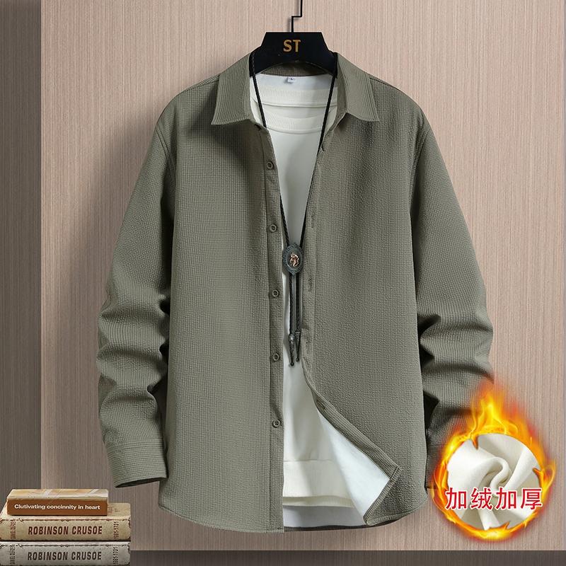 修身 秋冬季 加绒纯色衬衫 长袖 潮流青年一体绒加厚保暖衬衣外套 男装