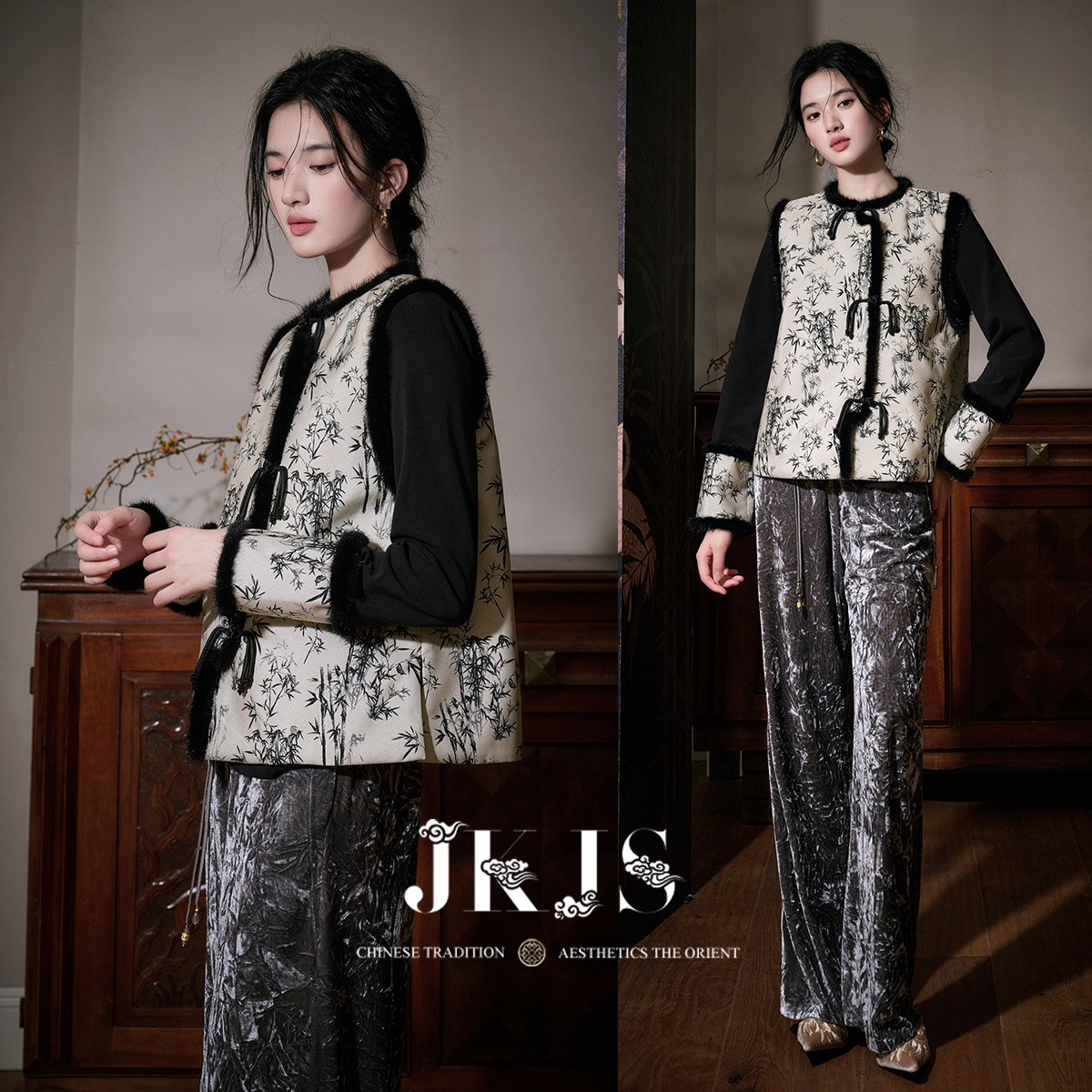 妈妈盘扣马甲无袖 国风提花马甲新款 气质外套 马甲新中式 靓仟家女款