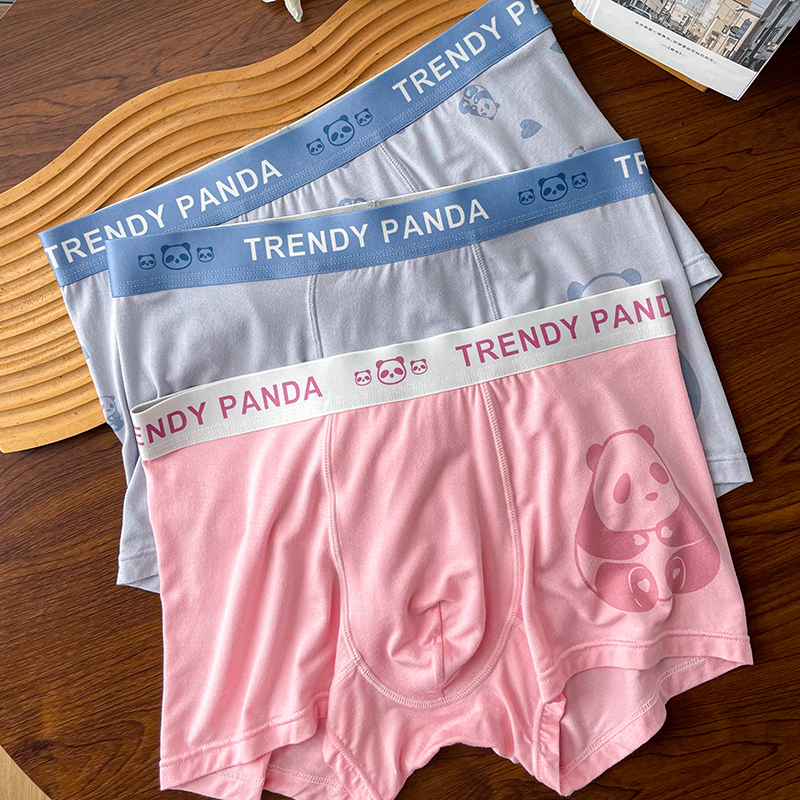 中腰平角四角短裤 男生抗菌透气潮流个性 内裤 粉色可爱卡通印花男士