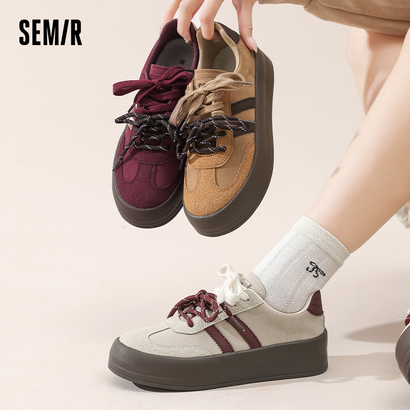 女2025春秋新款 板鞋 鞋 休闲爆款 女 子女厚底运动小白鞋 Semir德训鞋