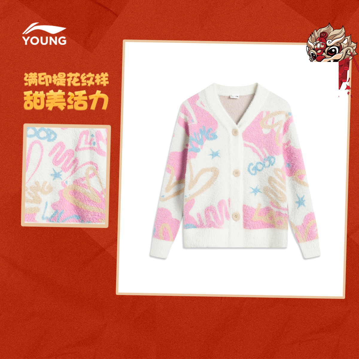 春装 商场同款 外套2025蛇年本命年衣服女童装 毛衣开衫 李宁新年装