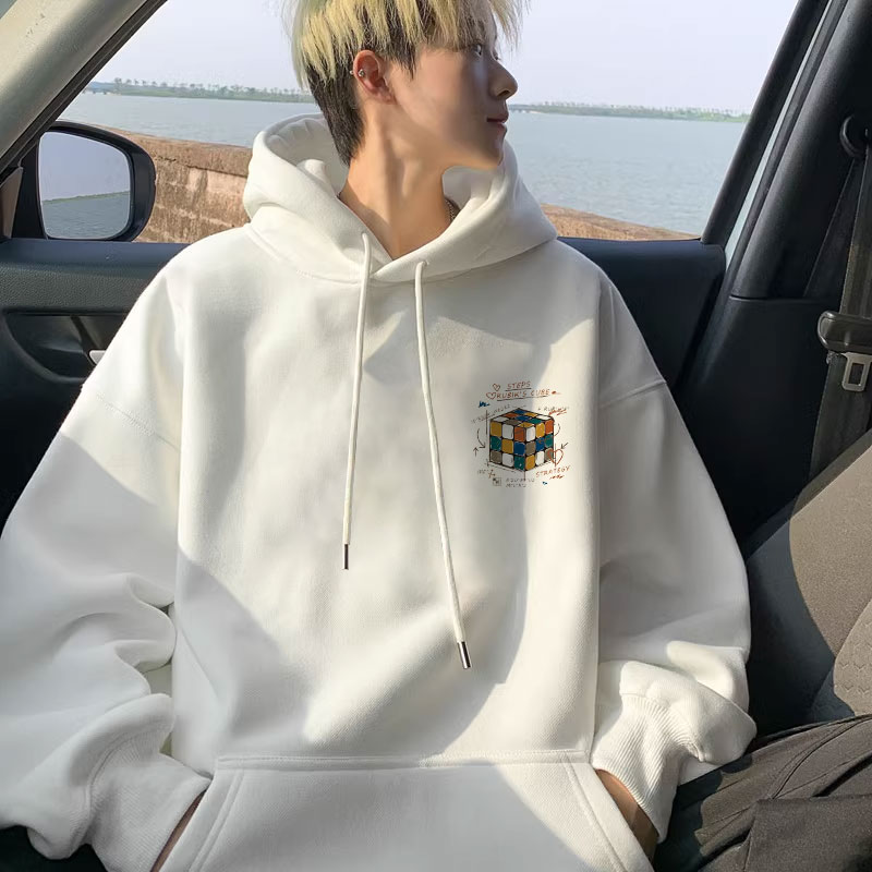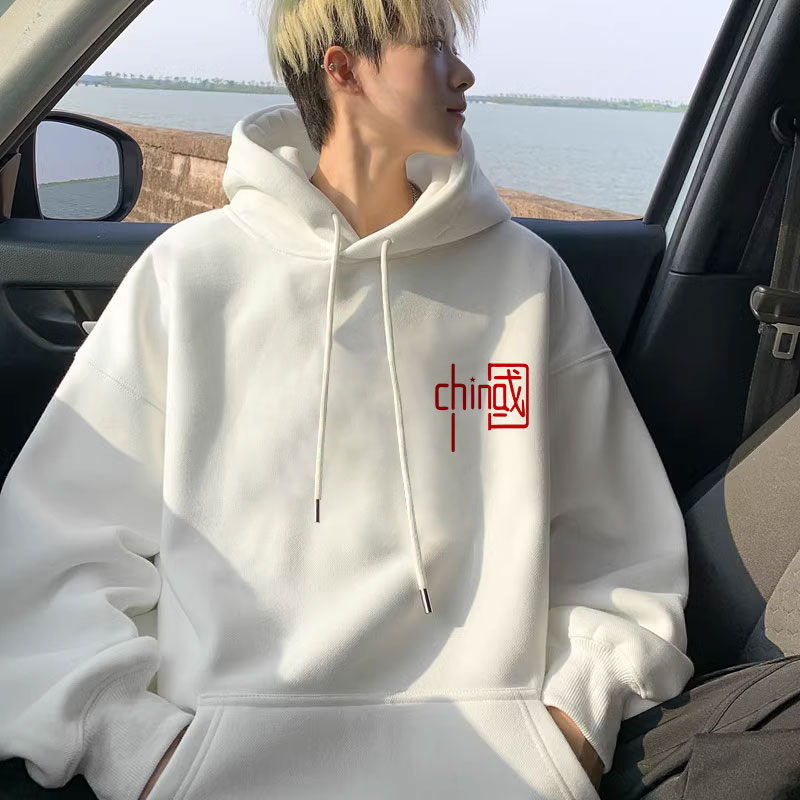 ins青少年加绒加厚上衣外套 秋冬季 美式 高街宽松潮牌连帽卫衣男款