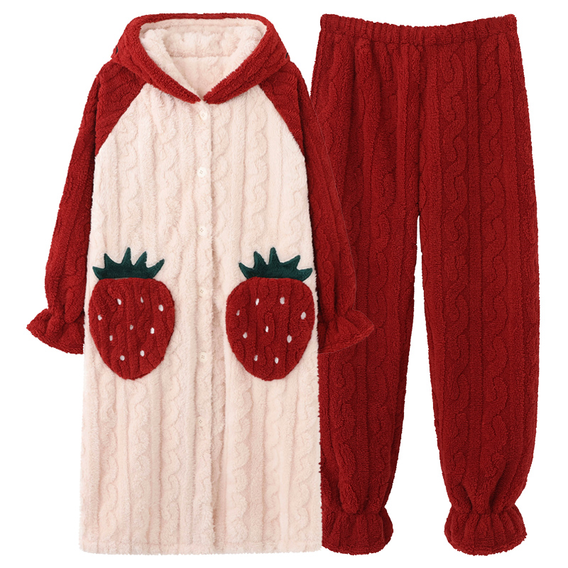 家居服 法兰绒可爱大码 猫人珊瑚绒睡衣女冬季 加绒加厚睡袍2024新款
