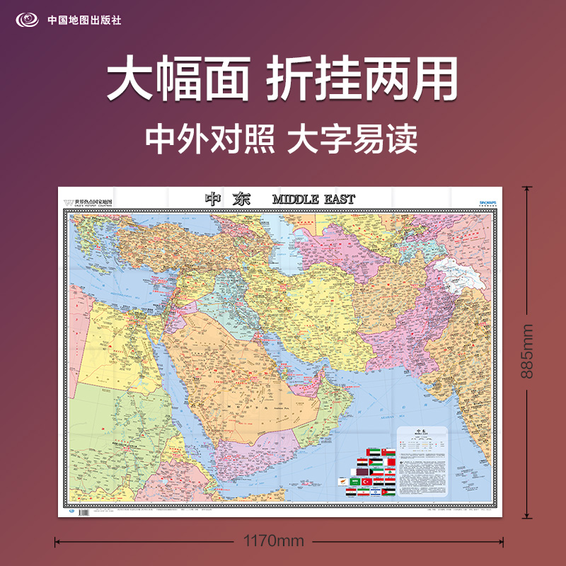 1.17 全新修订 高清彩印中英文对照 大字版 0.86米折挂两用大幅面世界热点国家地图 中东地图