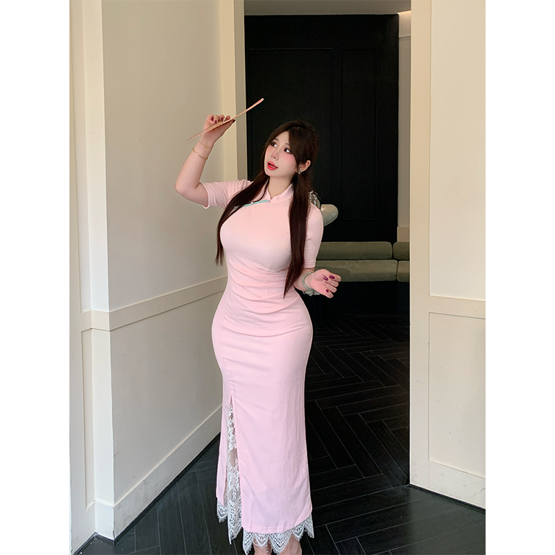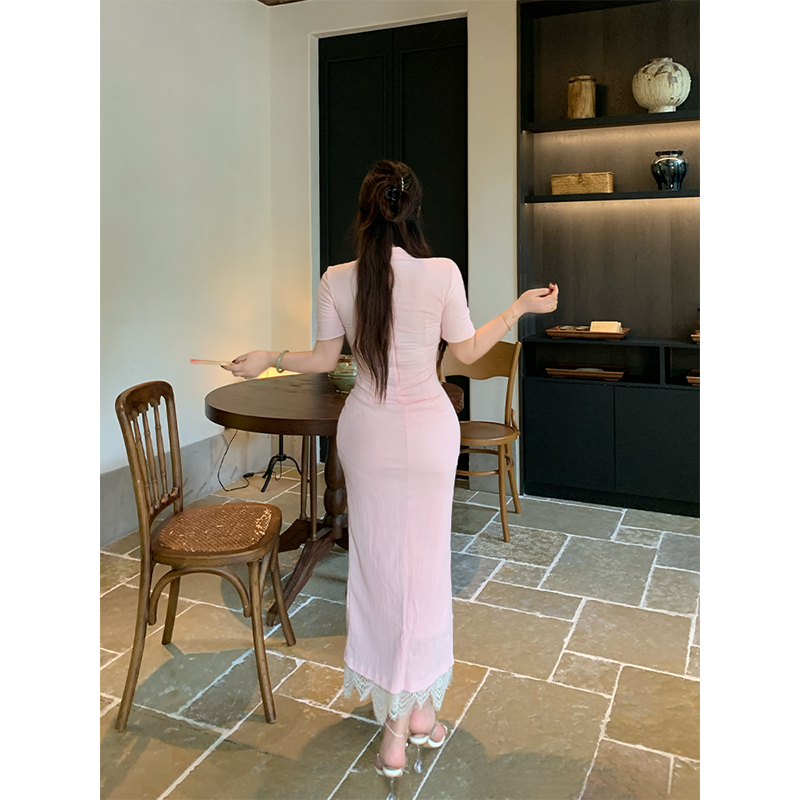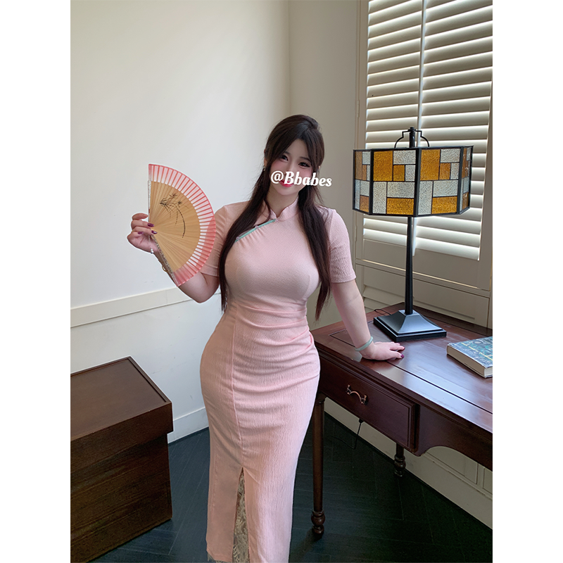 babes 短袖 桃花酿 国风改良旗袍裙修身 气质显瘦连衣裙 新中式