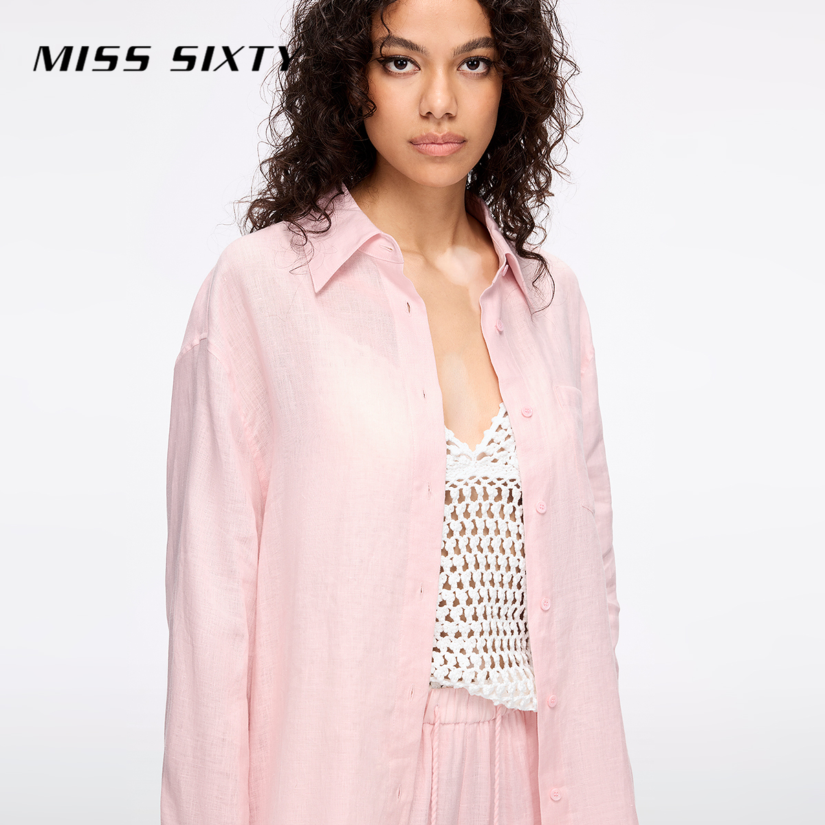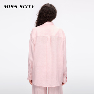 女纯色翻领亚麻百搭宽松长袖 Miss 衬衫 新款 淡人穿搭 Sixty2025夏季