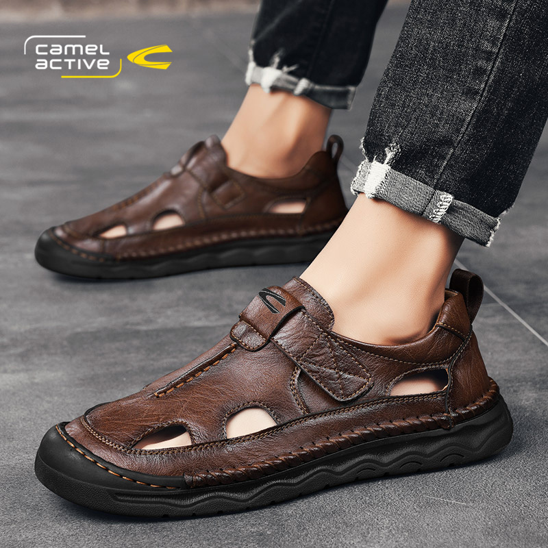 防滑防臭大码 骆驼动感沙滩鞋 外穿包头皮凉鞋 夏季 运动爸爸高端 男士