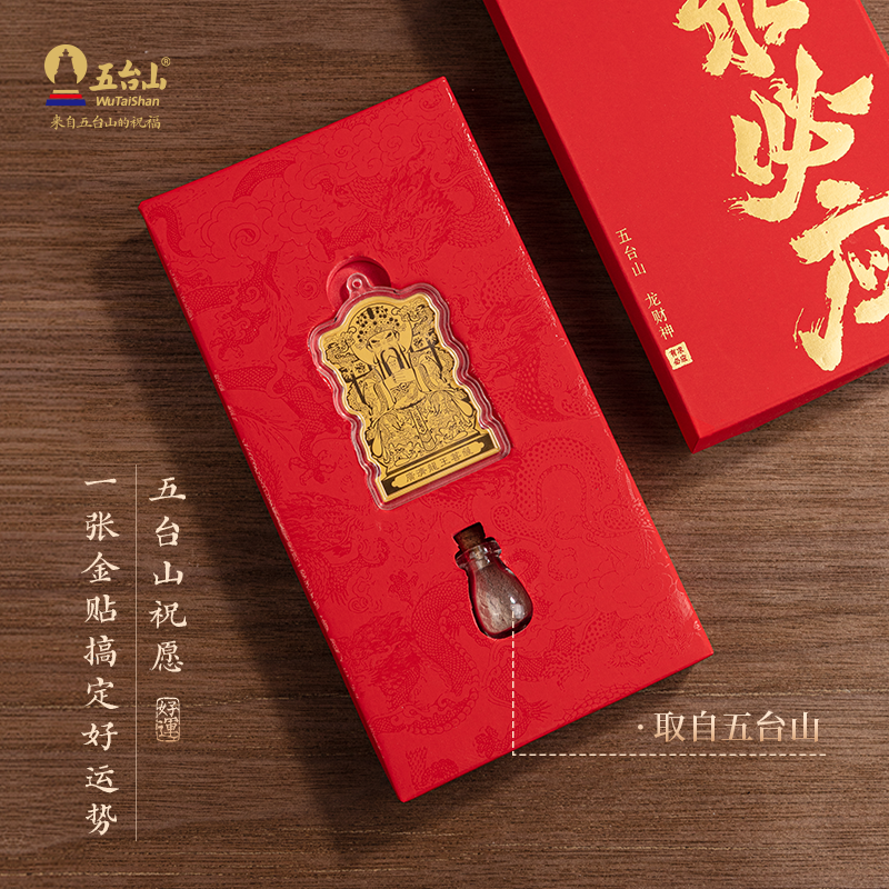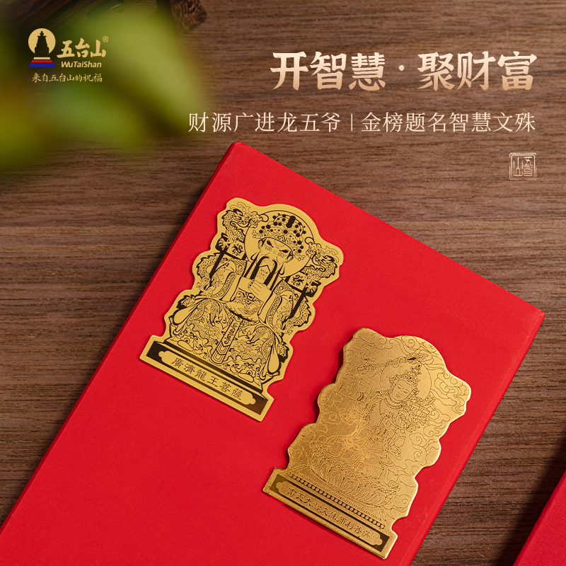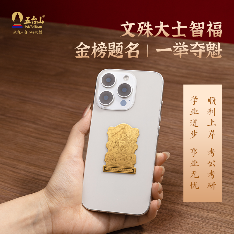 五台山999足金手机贴纸黄金文殊金榜题名五爷招财平板贴包包挂件