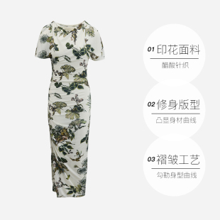 自营 醋纤针织印花连衣裙女中长款 jason 新款 气质长裙 wu夏季