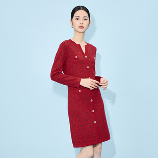 中长款 高端优雅轻熟气质修身 裙子 新款 菲梦伊钉珠红色连衣裙女秋装