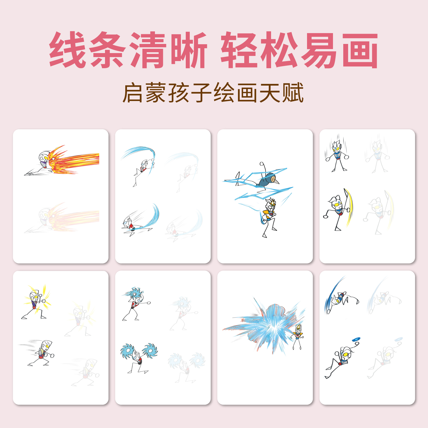火柴人奥特曼格斗系列描摹本绘画本描绘线描图画动漫人物画画卡通儿童临摹简笔画男孩涂鸦漫画涂色控笔训练绘画幼儿园入门画本画册