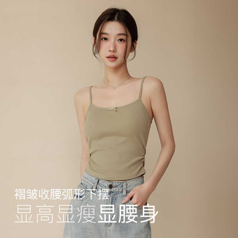 纯欲风褶皱设计感吊带背心女外穿内搭带胸垫修身 美背上衣2025新款