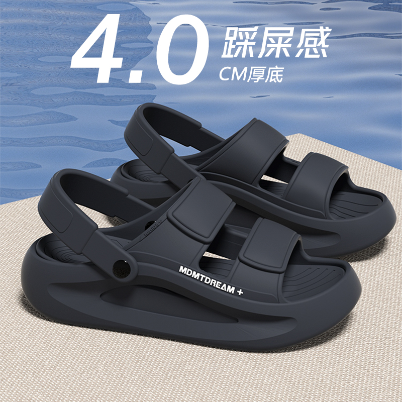 凉鞋 沙滩拖鞋 新款 潮流百搭软底高弹外穿夏季 子 踩屎感厚底拖鞋 男士