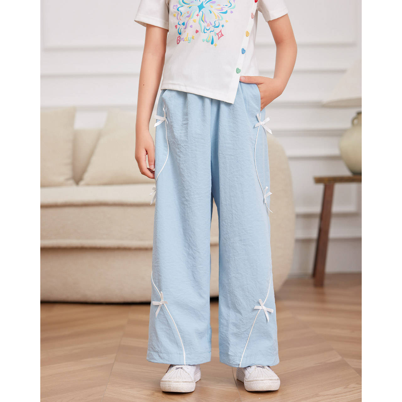 新品 春夏裤 优选 毛边牛仔长裤 子儿童阔腿裤 马克华菲女童喇叭裤