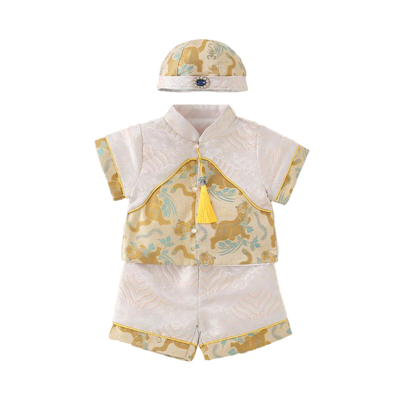 婴儿满月百天抓周衣服 套装 男宝宝周岁礼服中国风儿童夏季 高端唐装