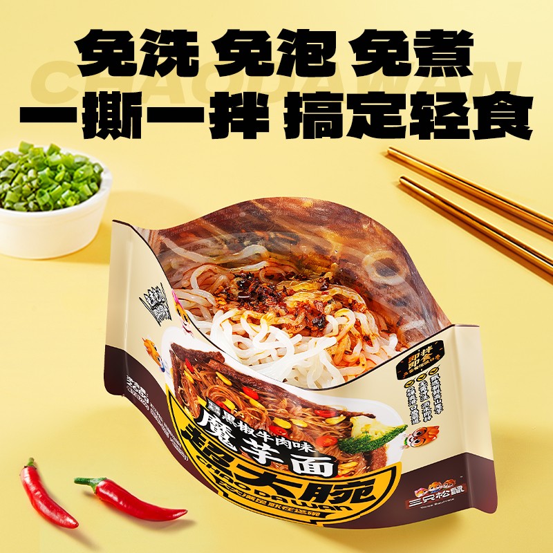 免煮拌面米粉米线方便面速食夜宵 三只松鼠_超大腕魔芋凉面
