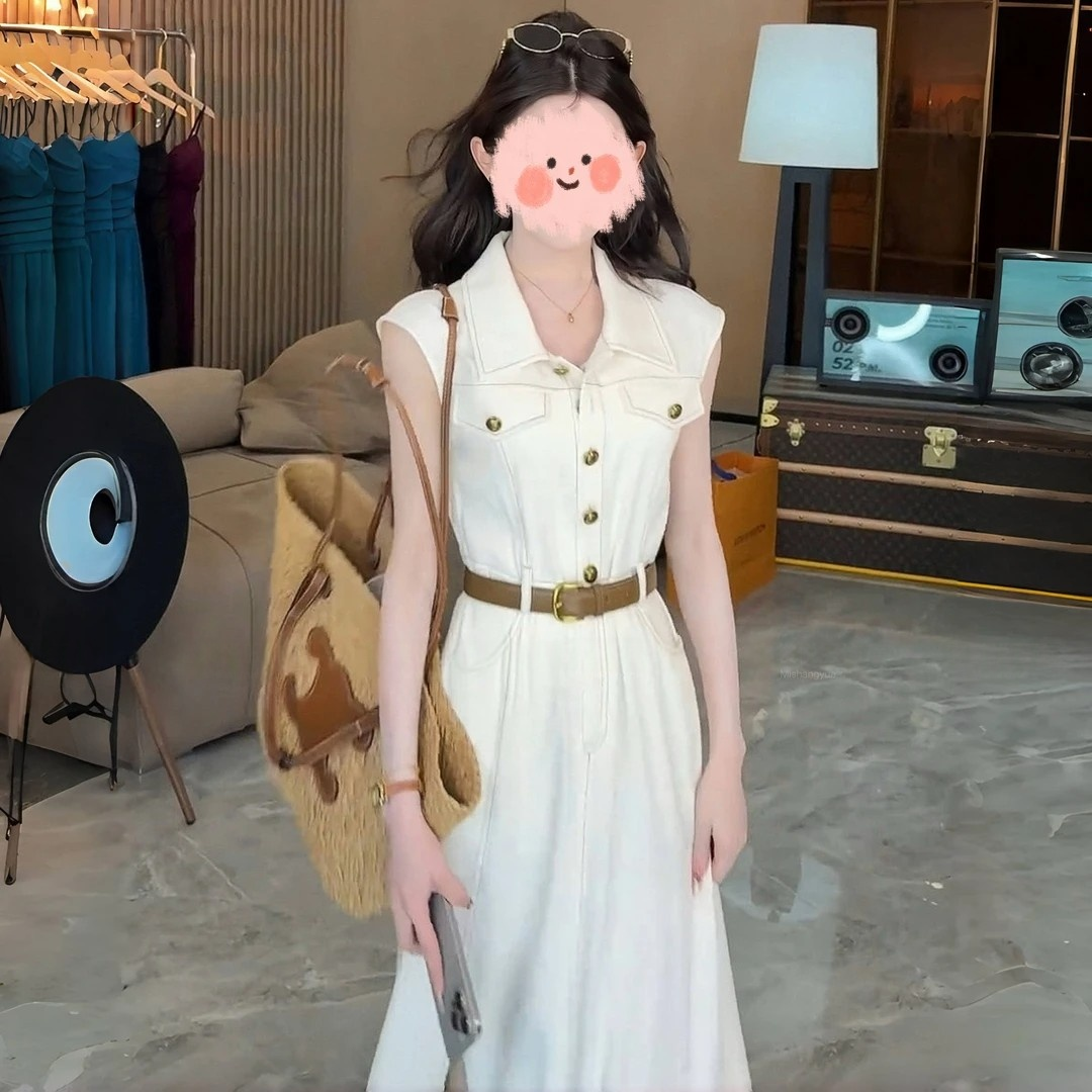 长款 千金清冷感贵系衣服女装 显瘦无袖 修身 连衣裙 洋气时髦气质夏季