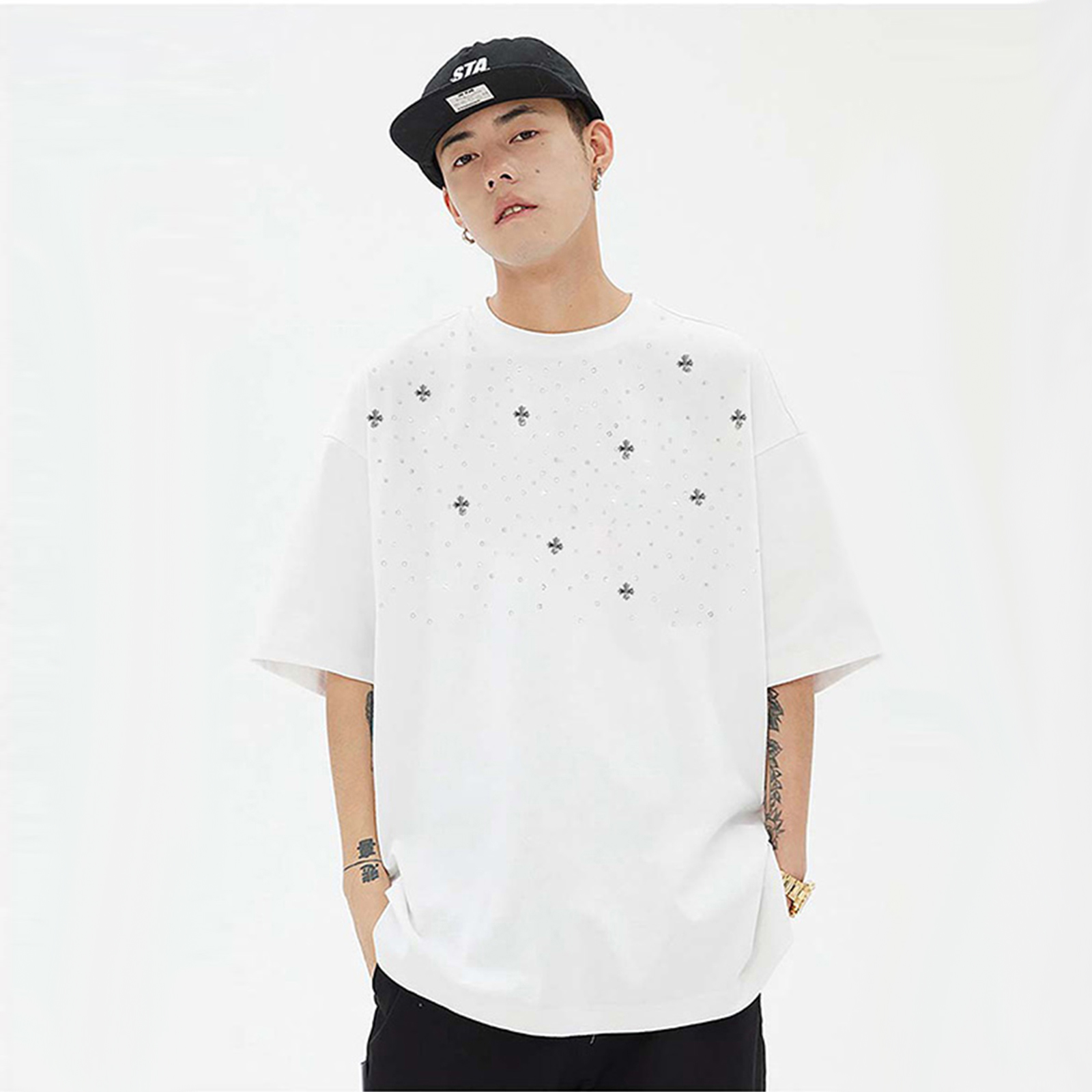 夏季 T恤K2950 260克重磅纯棉满天星烫钻重工情侣短袖