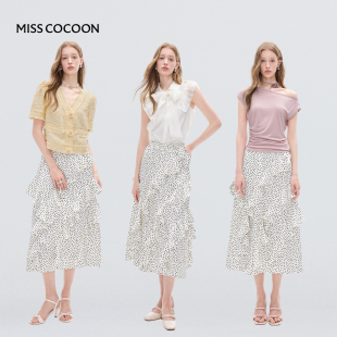 MISSCOCOON可可尼A字白色波点半身裙女2025夏季 荷叶边裙子 新款