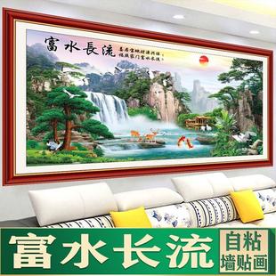 流水生财山水画风景画客厅沙发挂画背景墙装 饰画壁画床头墙贴自粘