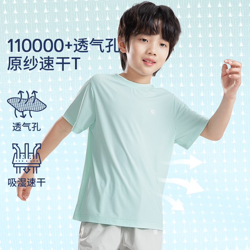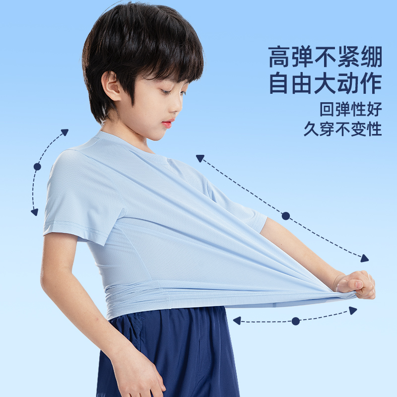 新款 速干衣2025夏季 大童衣服运动短T冰丝凉感 t恤儿童夏装 男童短袖