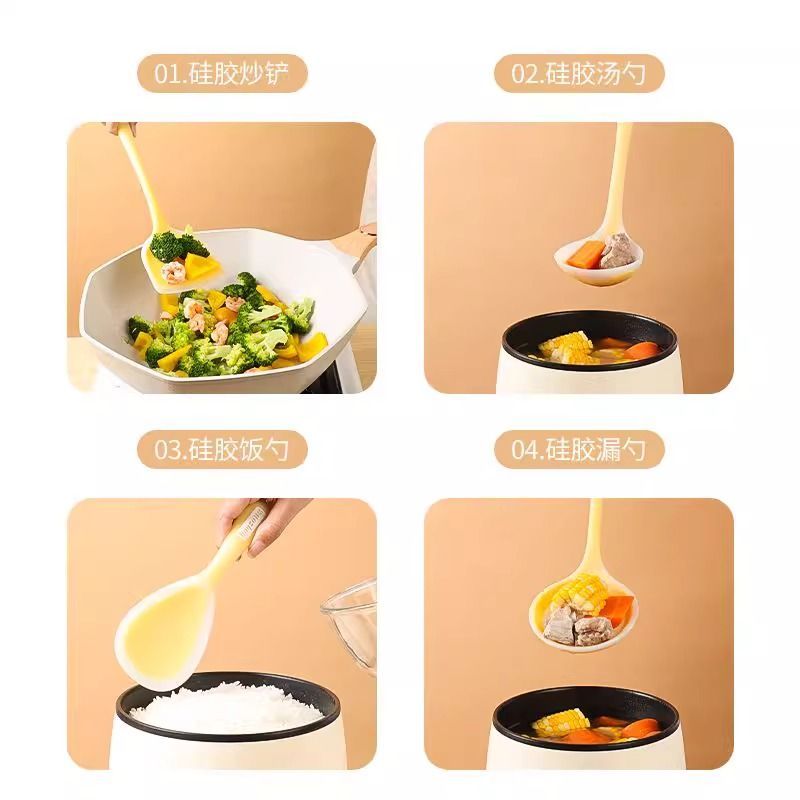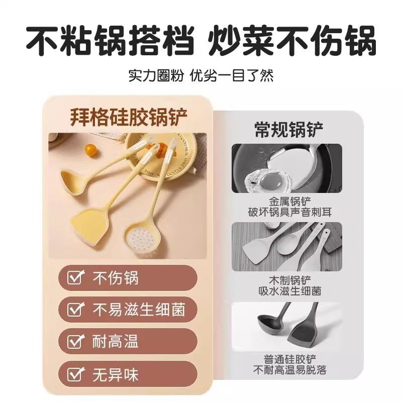 拜格硅胶锅铲不粘锅专用耐高温食品级家用炒菜铲汤勺漏勺套装 组合