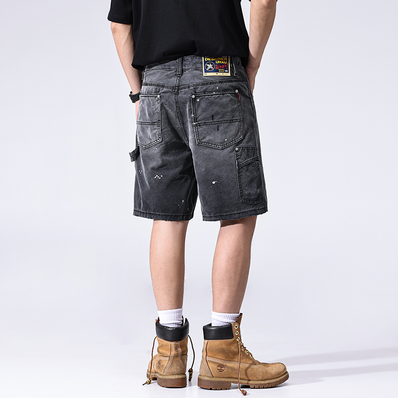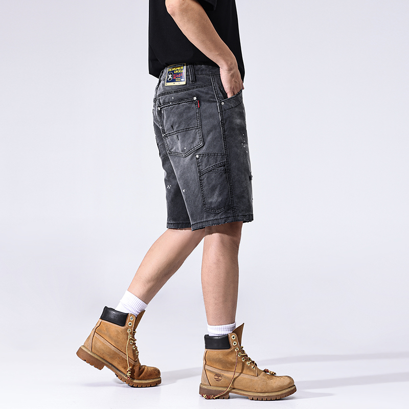 子 秋男女裤 江南先生NewJNXS美式 复古侧边分割星星印花弯刀牛仔裤