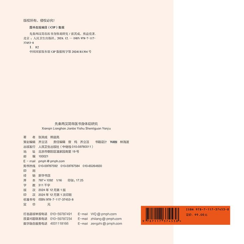 人民卫生出版 先秦两汉简帛医书身体观研究 熊益亮 张其成 社9787117374538 精装