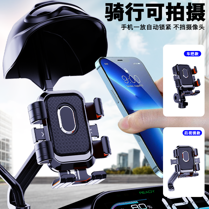 黑科技电动车专用手机支架摩托车外卖骑手小头盔防抖遮阳挡雨