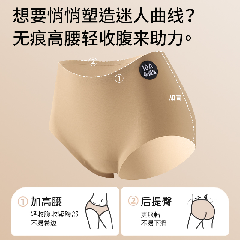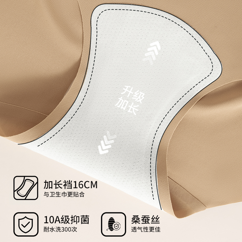 大码 无痕透气亲肤薄真丝莫代尔三角裤 女 蕉内银皮500E女士内裤 3件