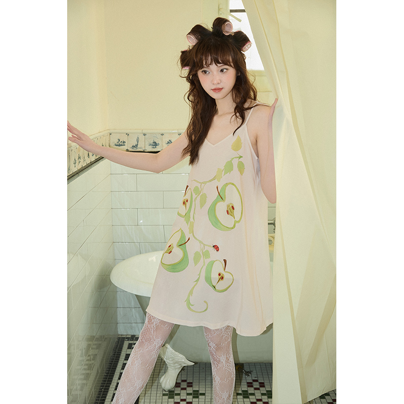 外穿 女睡衣家居服睡裙青苹果休闲纯棉吊带一体式 V&K2025夏季 新款