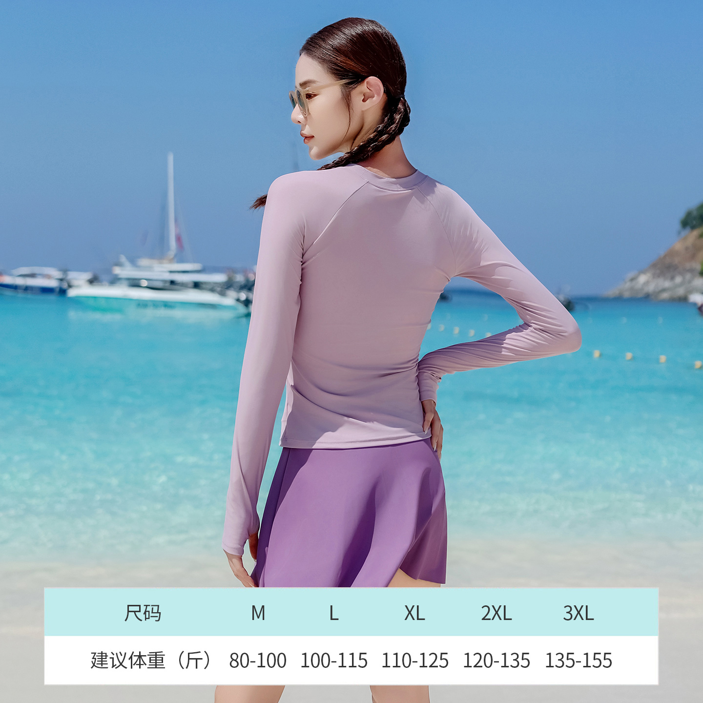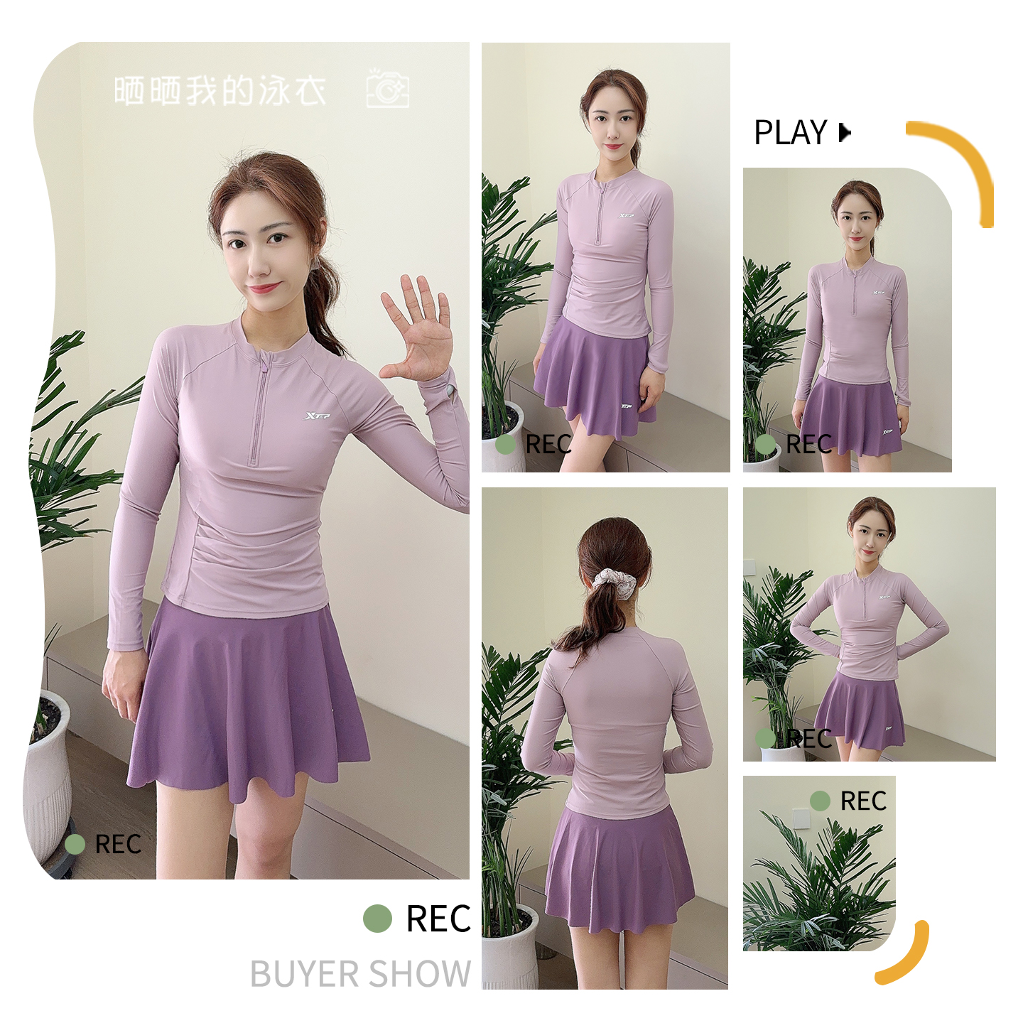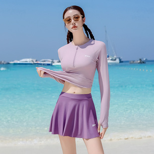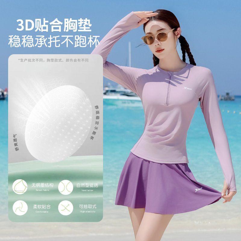 显瘦保守女孩海边度假运动游泳装 长袖 泳衣女2025年新款 特步分体式