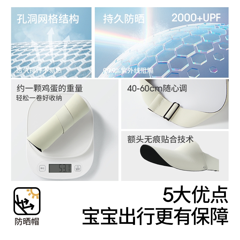 贝肽斯儿童防晒帽超轻空顶帽子宝宝遮阳帽太阳帽男女童夏季 透气S
