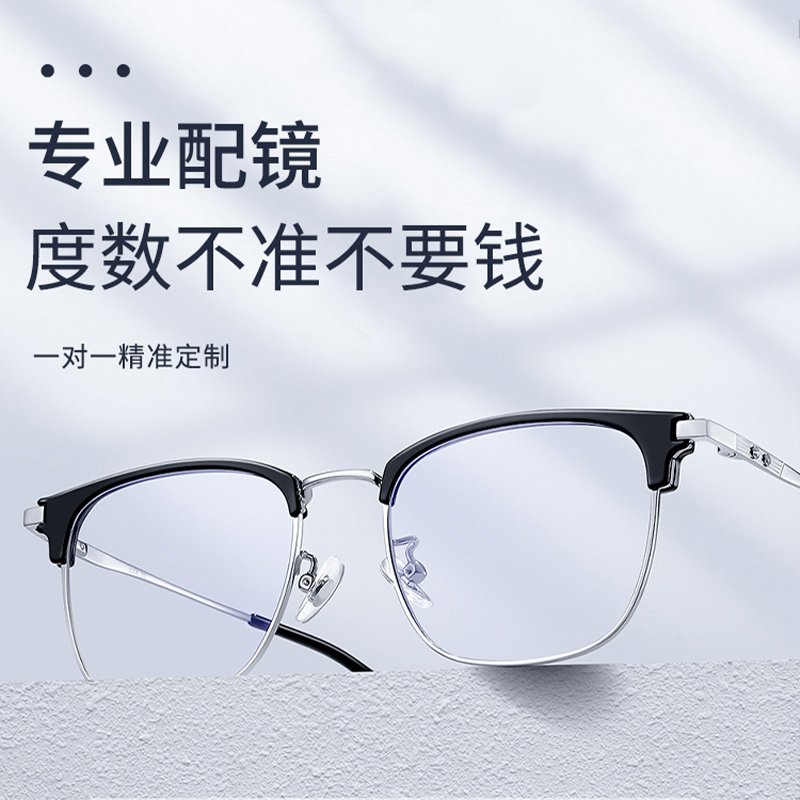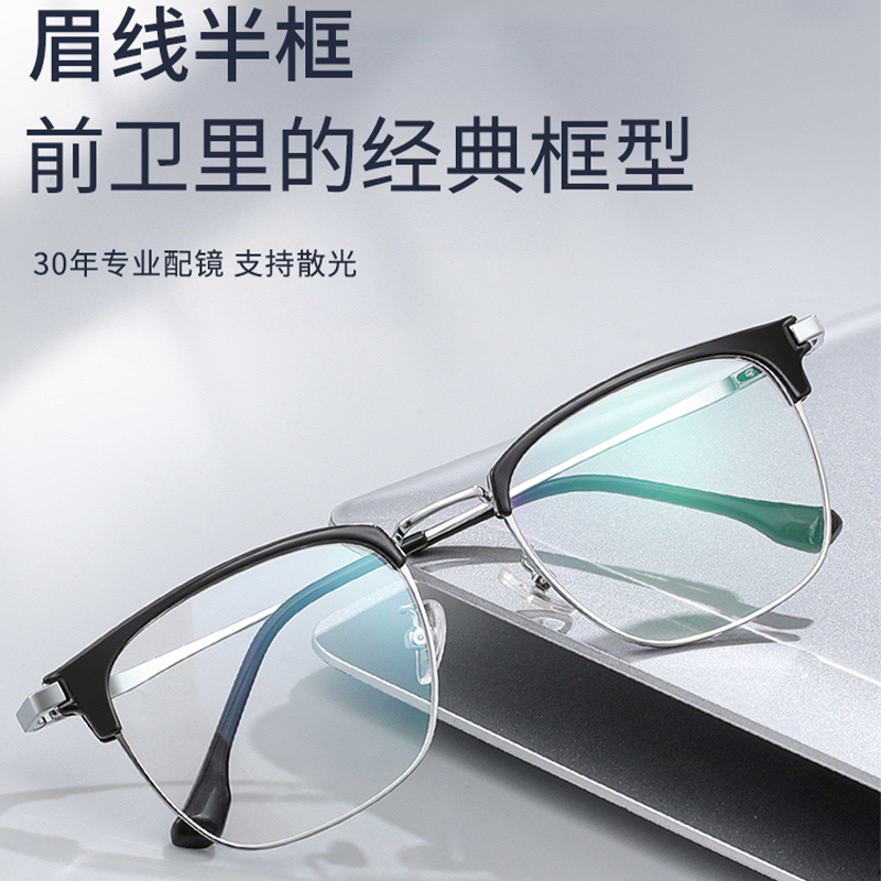 男生高颜值近视眼镜可配度数高级感斯文痞帅半框定制专业线上配镜