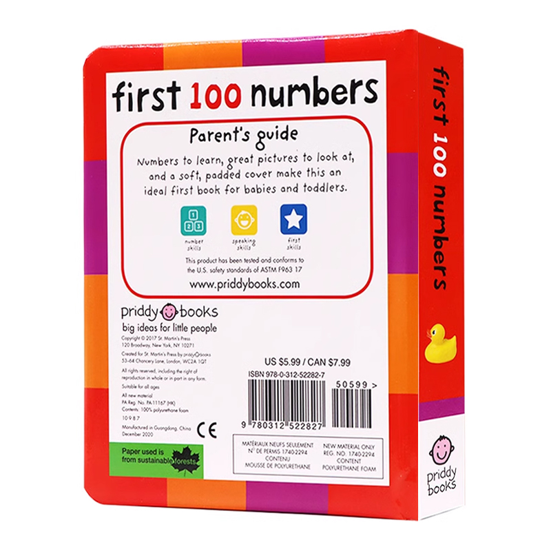 Numbers books priddy 进口 First 100 原版 宝宝启蒙单词 图解字词典 纸板书 初级入门100个数字 亲子阅读纸板书 英语书籍 英文版