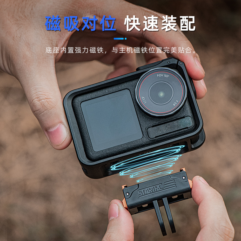 3磁吸转接件快装 快拆底座OSMO灵眸运动相机转接配件骑行三脚支架兔笼保护 5Pro STARTRC适用DJI大疆Action