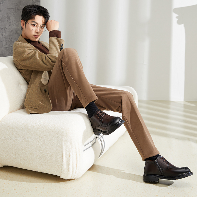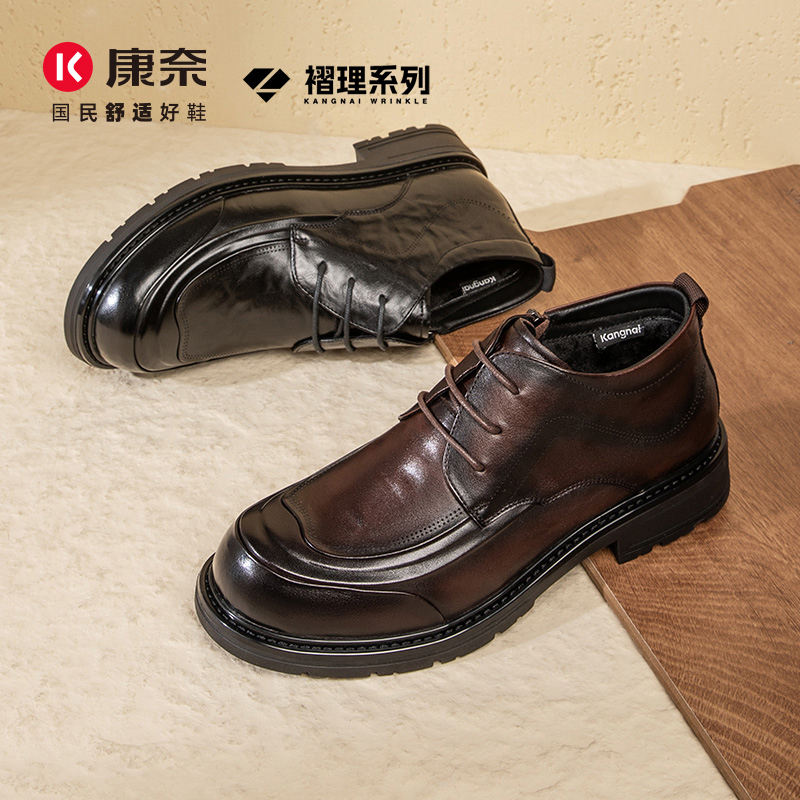 冬季 加绒靴子百搭高帮休闲皮鞋 男鞋 潮流男士 韩版 马丁靴男2025新款