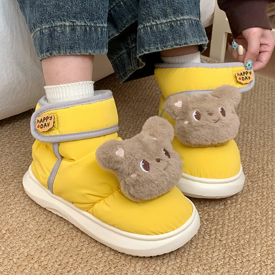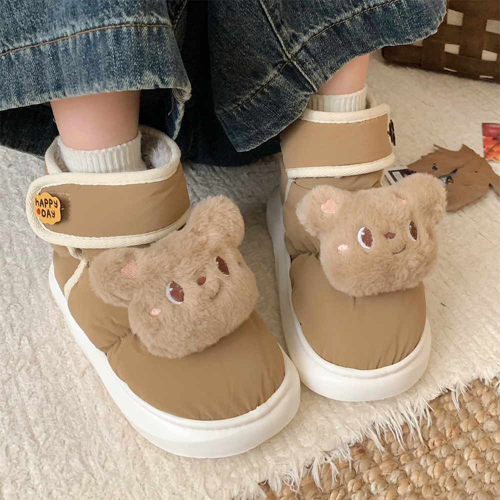 创意魔术贴时尚 防滑保暖棉靴可爱风毛绒小熊男女冬厚底情侣雪地靴