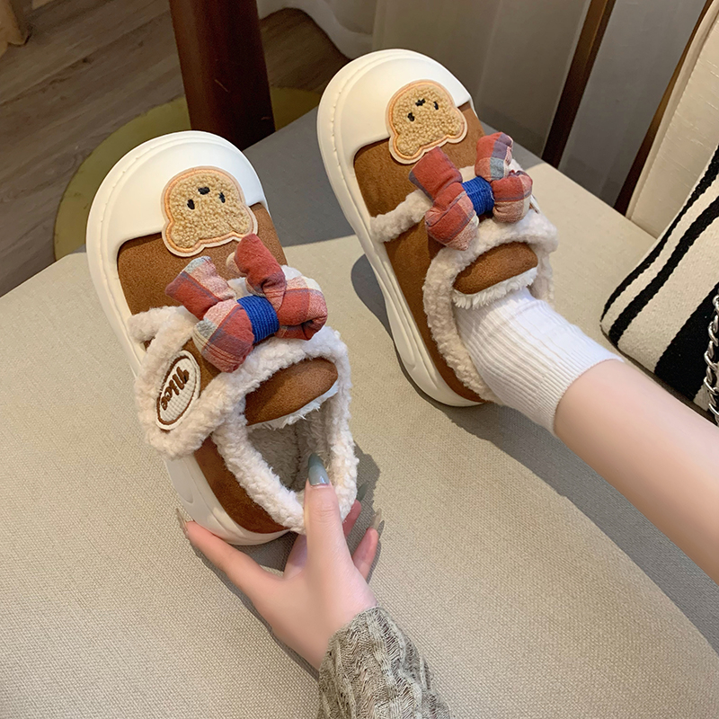 防滑厚底包跟室内家居月子保暖可爱毛毛棉鞋 孕妇棉拖鞋 女士秋冬季