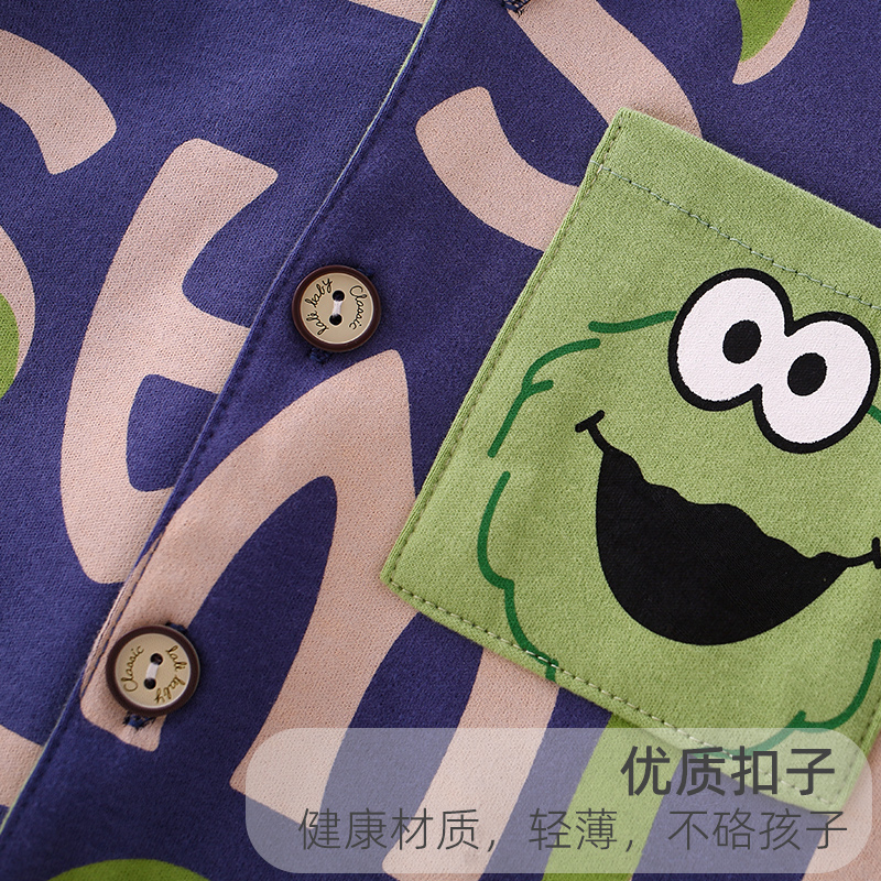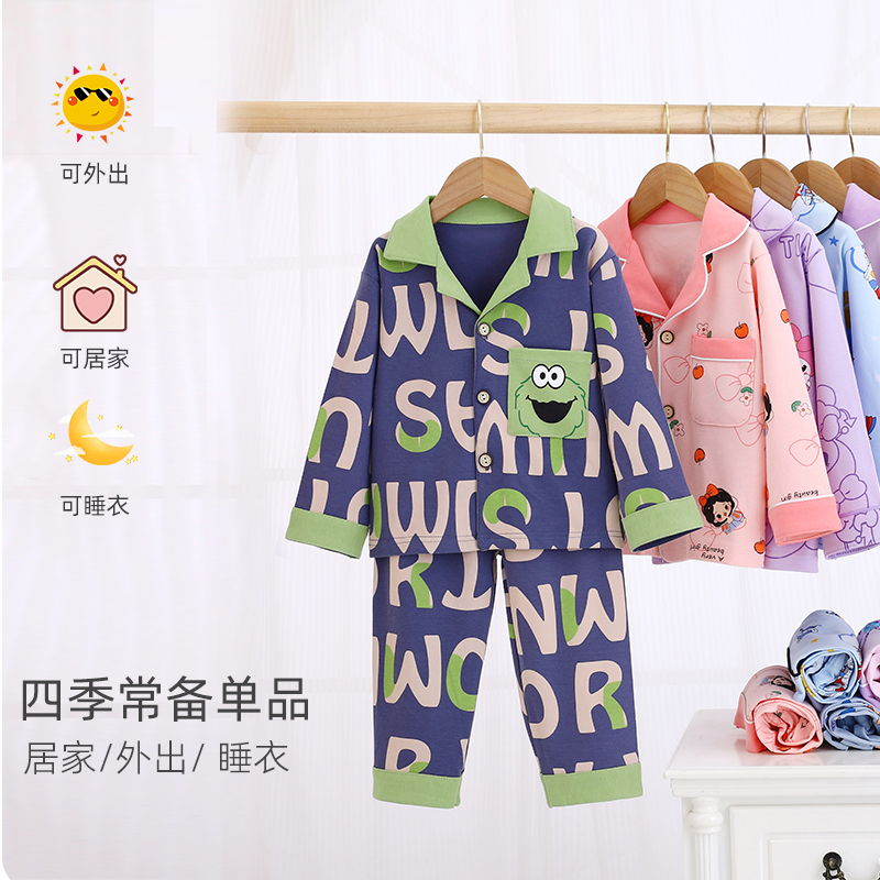 中薄款 儿童睡衣开衫 春秋季 翻领纯棉男女孩长袖 a类全棉家居服 套装
